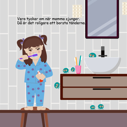 Det är kväll och dags att borsta tänderna. Men Vera vill inte. Det känns konstigt och det kittlar i munnen.